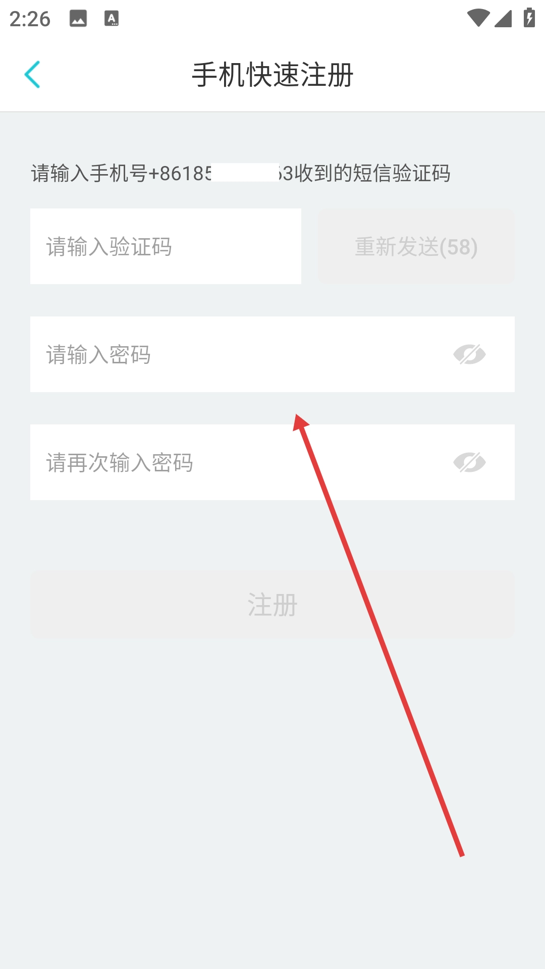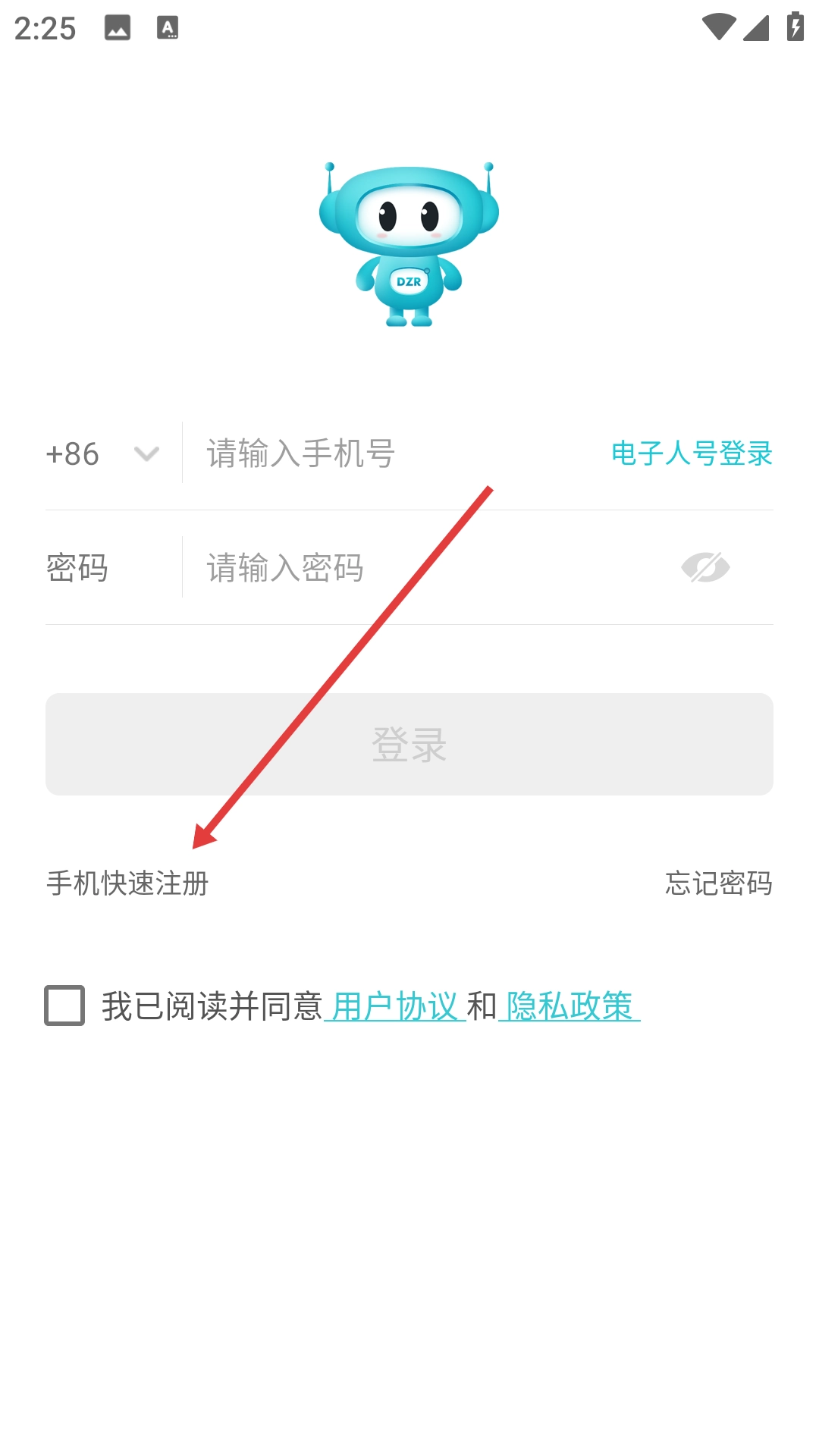 1、点击【手机快速注册】,进入手机快速注册页面。