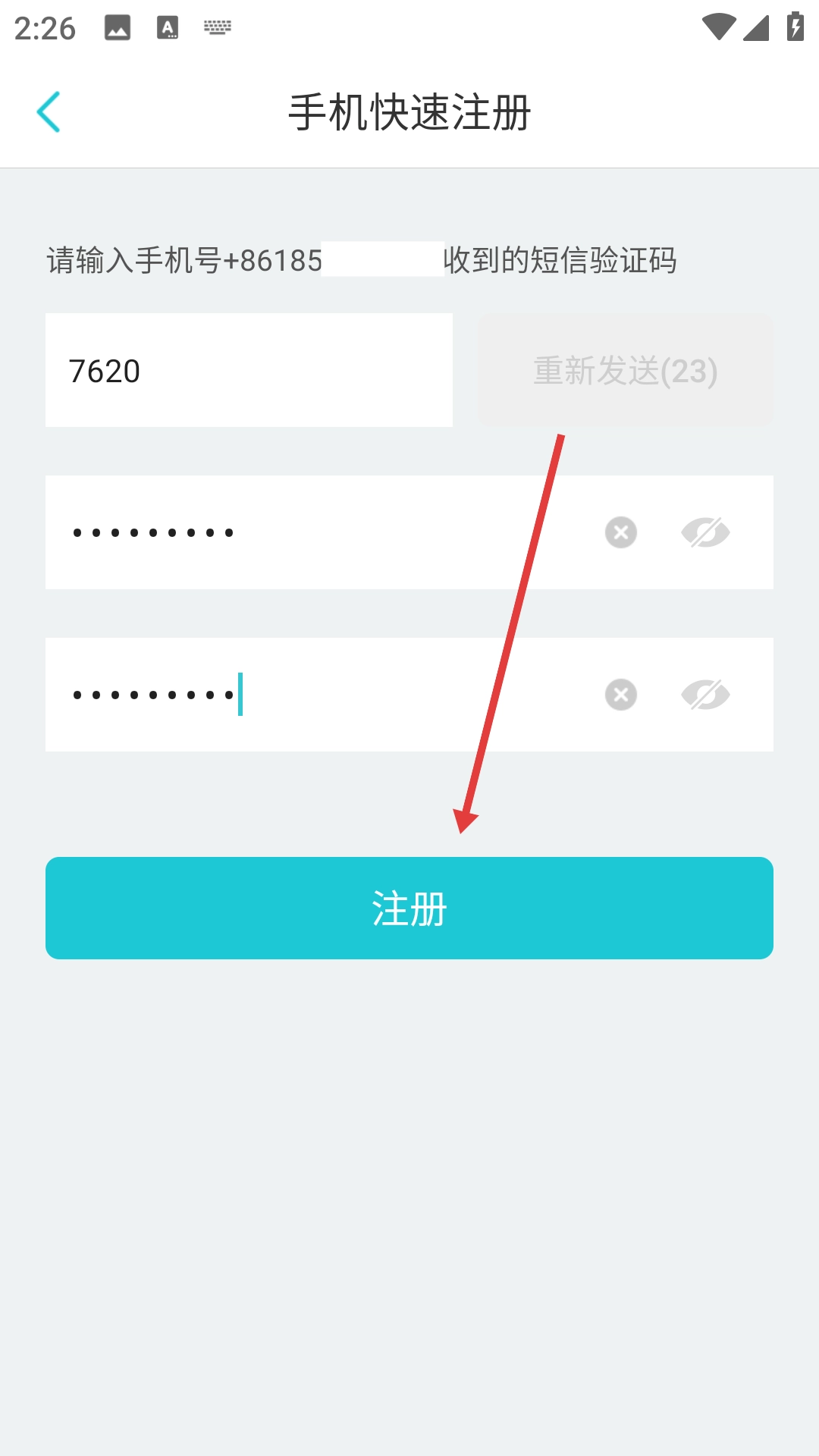 4、填写完成后,点击【注册】,完成账号注册流程。