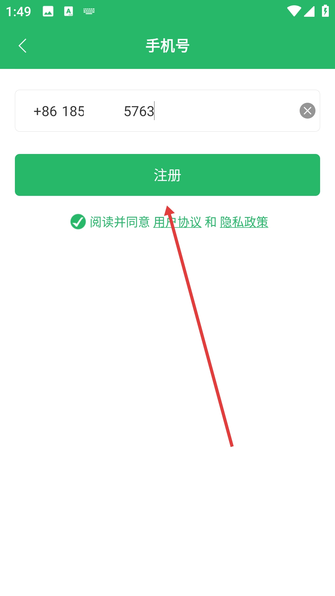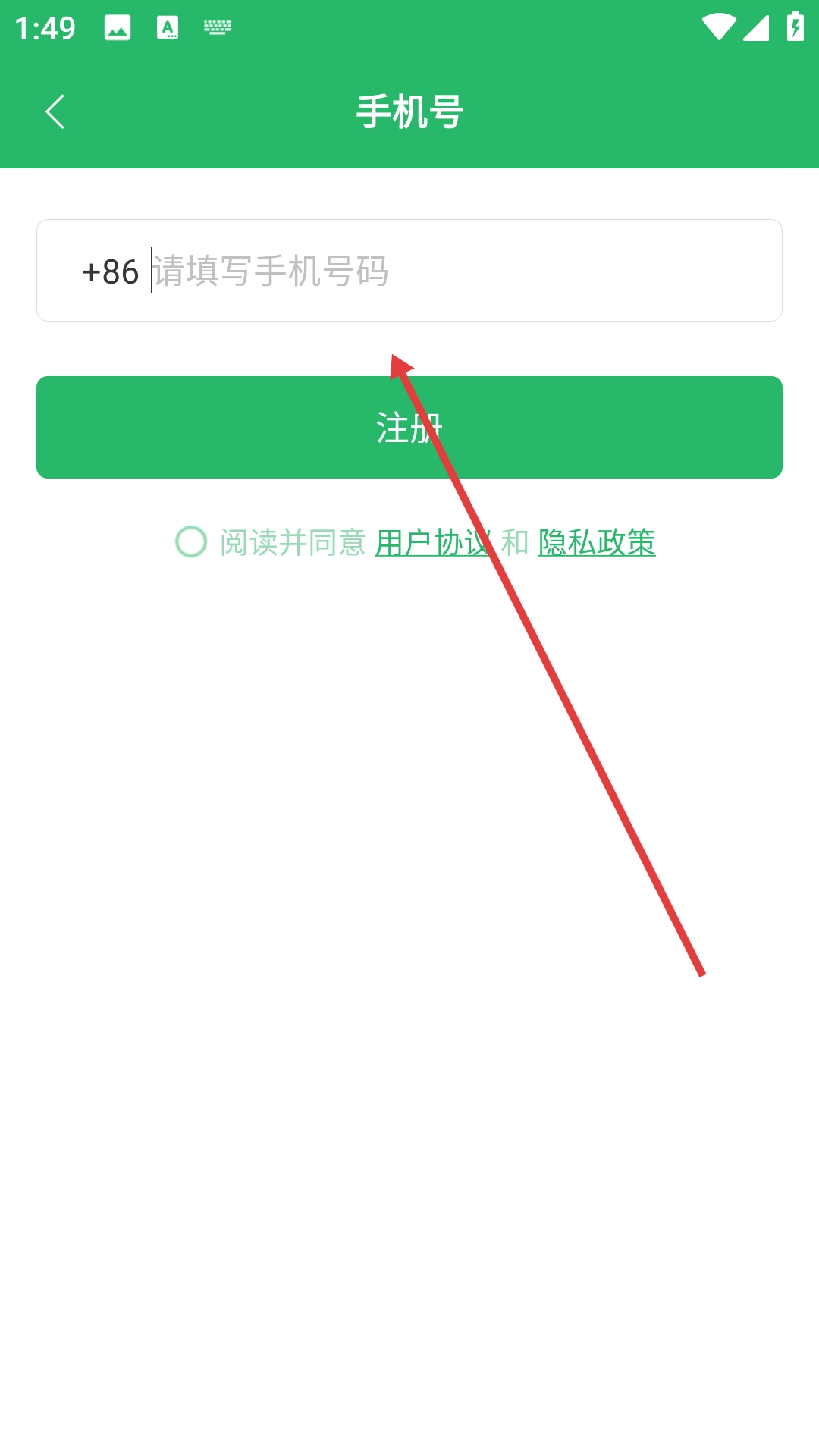 2、在手机号填写页面输入手机号码。