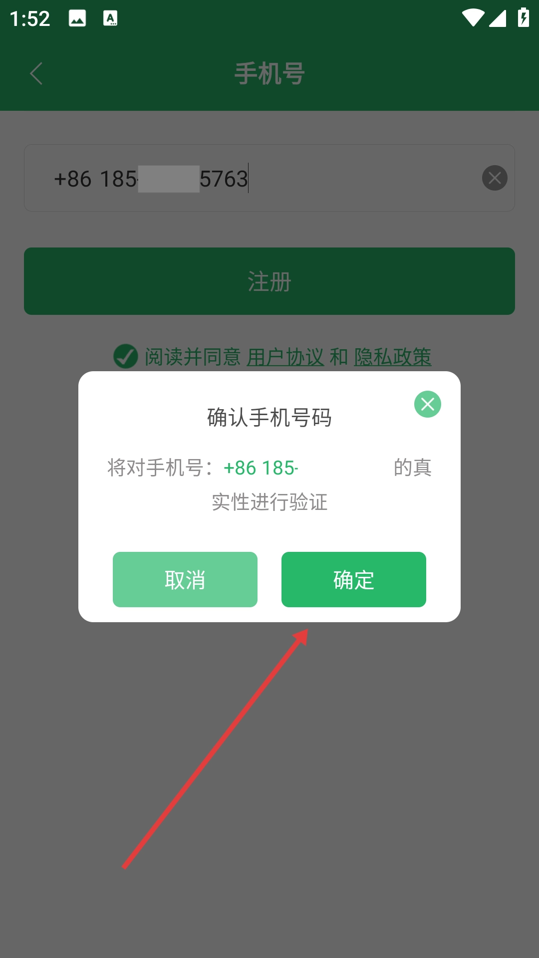 4、在确认手机号码的弹窗中点击【确定】,完成手机号码验证流程。