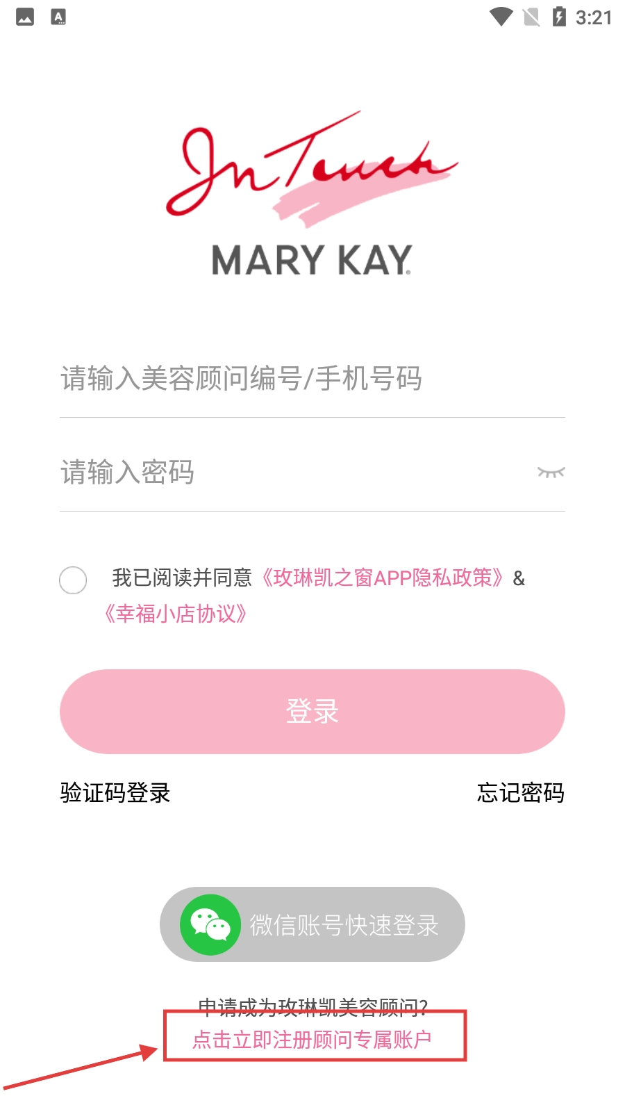 2、进入登录界面后,若要注册账号,可点击【点击立即注册顾问专属账户】进入注册流程。