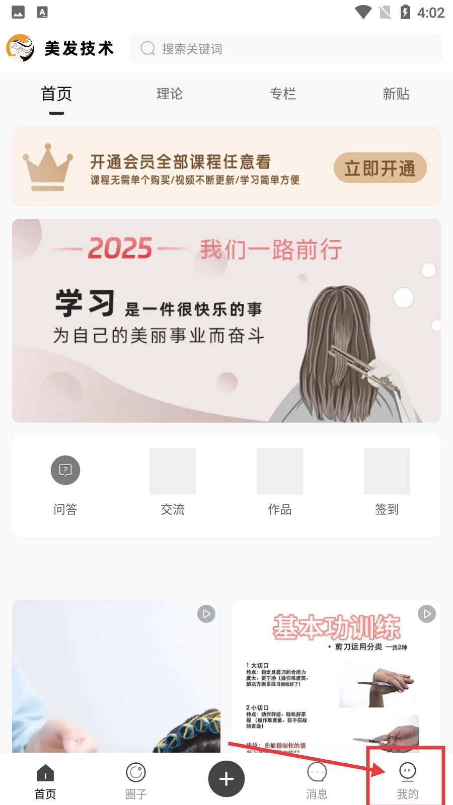 1、在美发技术首页,点击底部【我的】按钮,可进入个人中心界面。