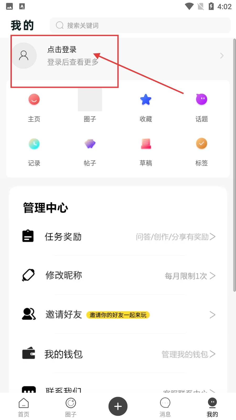 2、进入个人中心界面后,点击【点击登录】区域,可进入登录界面。