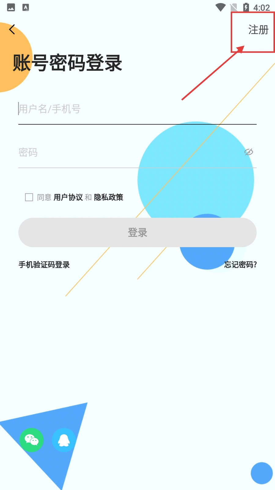3、在登录界面,若没有账号,可点击右上角【注册】按钮进入注册流程。