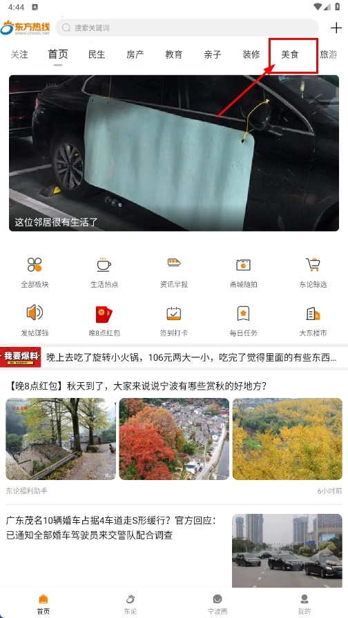 3、在美食板块页面,点击感兴趣的美食资讯,如“小钱风吃搭”相关资讯,进入资讯详情页。