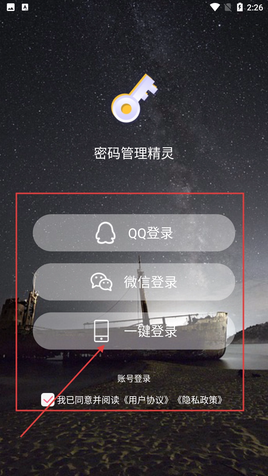3、可选择QQ登录、微信登录、一键登录或账号登录,登录前需勾选同意《用户协议》和《隐私政策》。