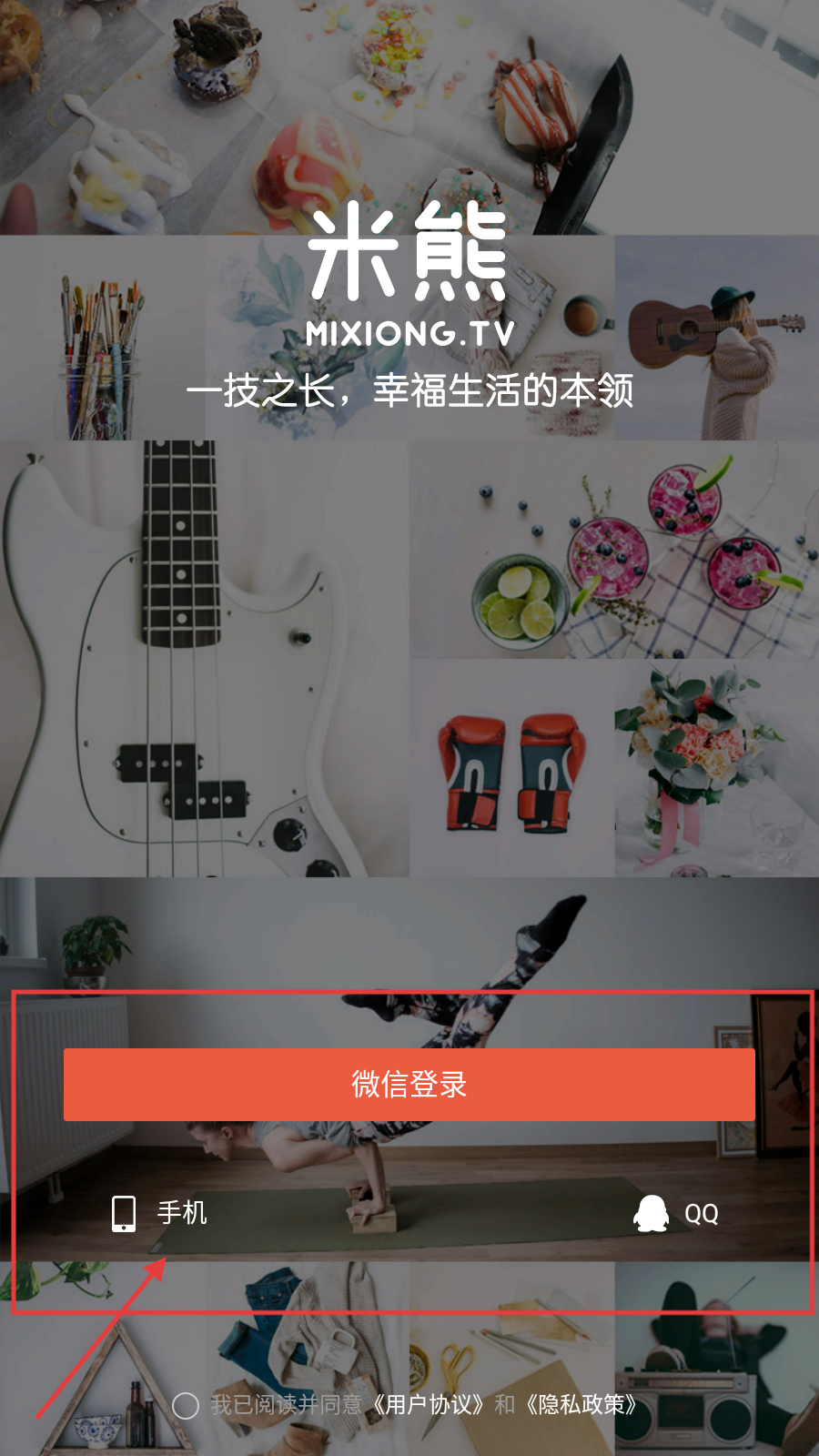 1、在米熊的登录选择界面,点击【手机】这一选项,即可进入手机号输入界面。