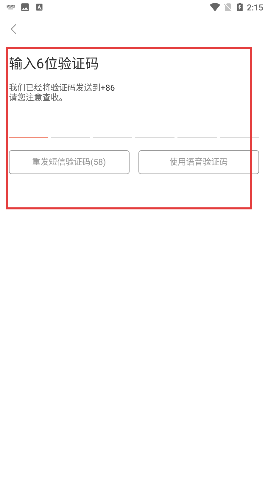 3、进入验证码输入界面后,输入收到的6位验证码,即可完成登录流程。