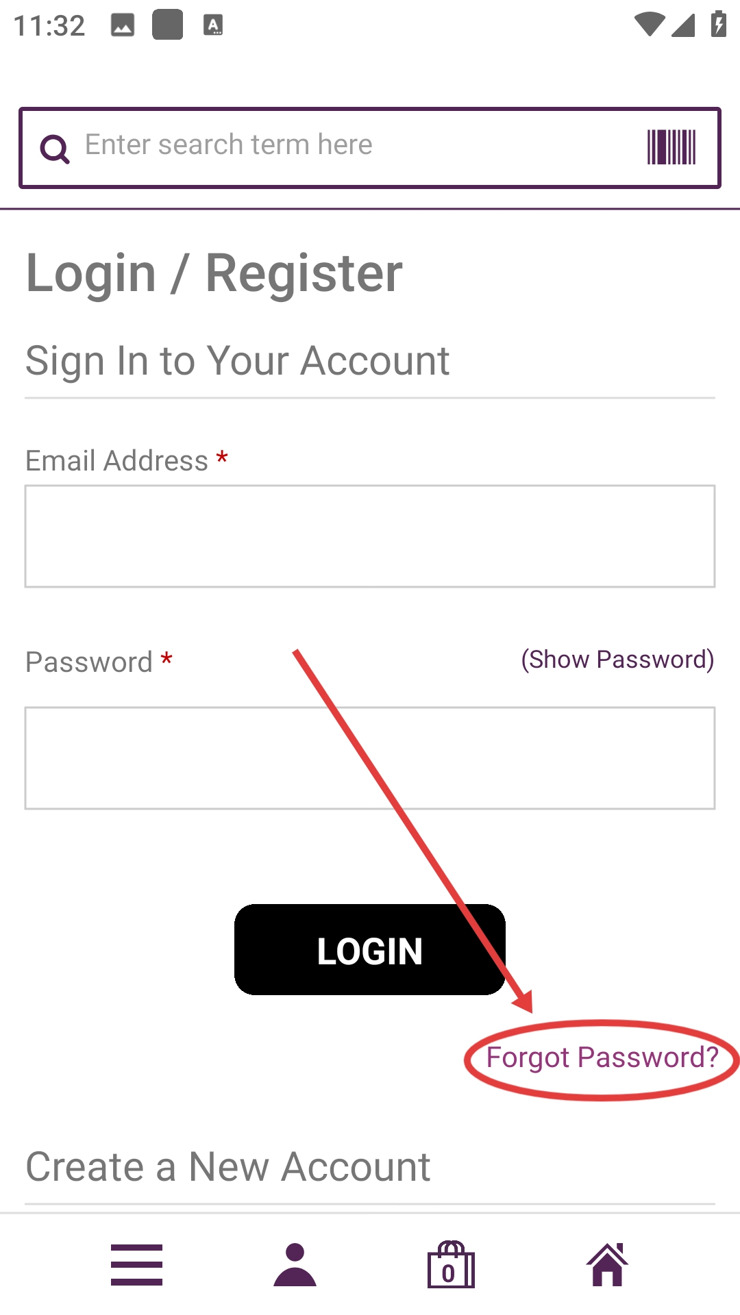 3、在登录/注册页面点击【Forgot-Password?】,即可进入忘记密码页面。