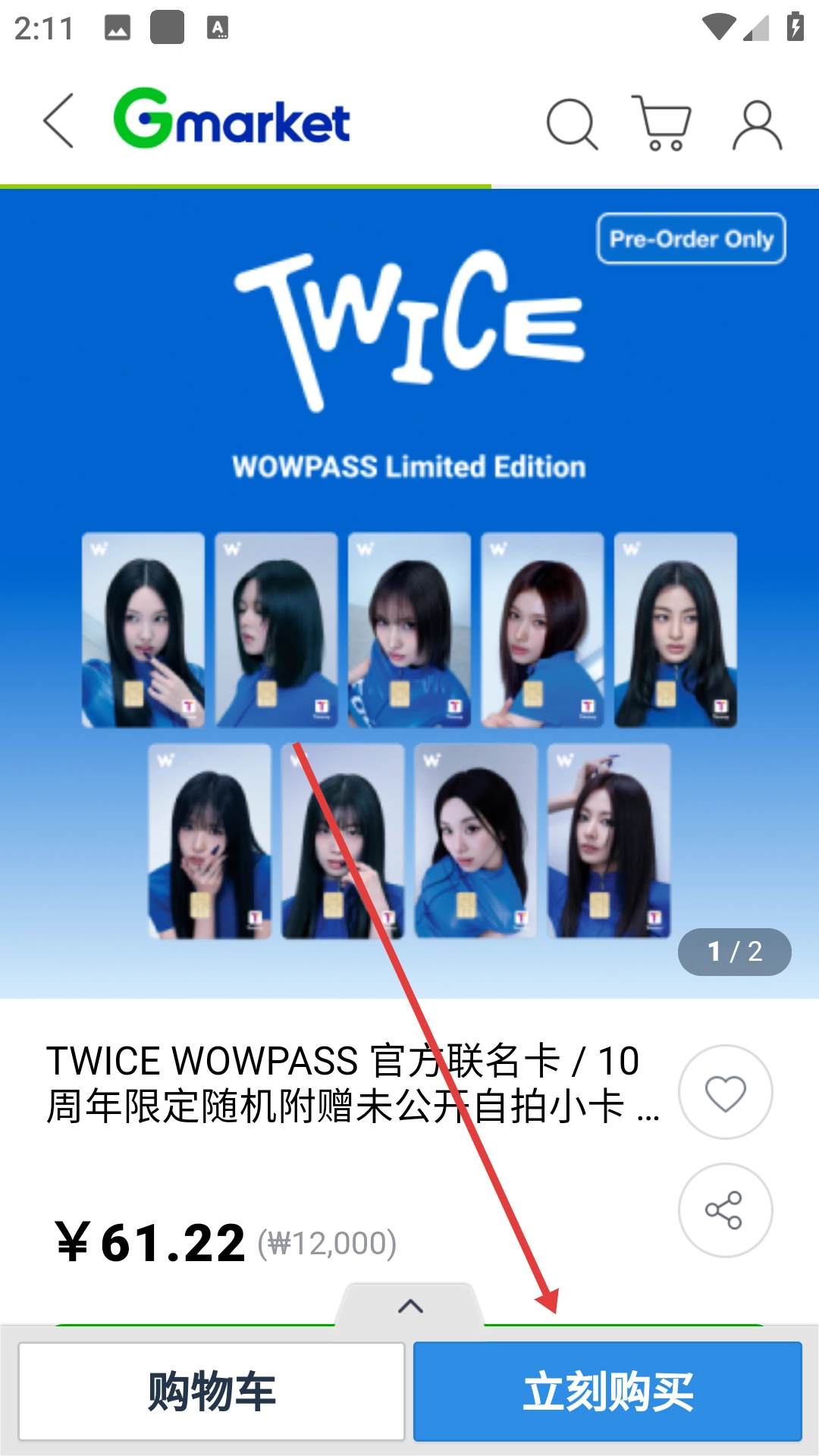3、在热卖商品分类页面选择目标商品(如TWICE-WOWPASS联名卡),进入商品详情页面。