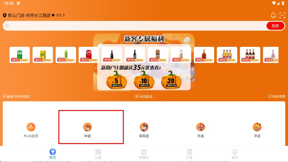 1、点击【啤酒-分类图标】,进入啤酒分类页面。