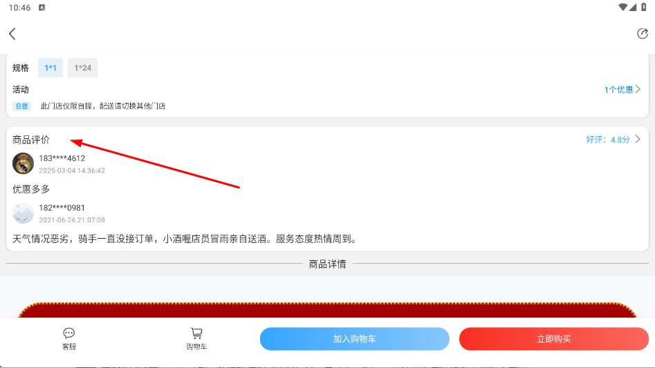 3、在商品详情页可浏览【商品评价-板块】,查看用户评价。