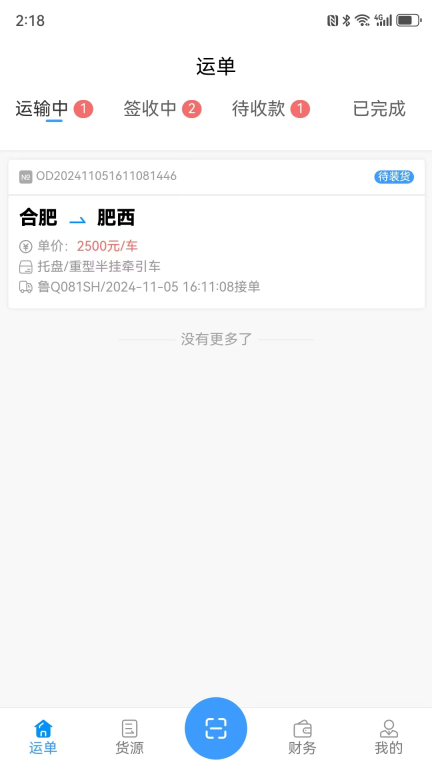 2、针对已承接的运单开展管理工作,可实时查看运单的当前状态,同时掌握装货地点、卸货地点等相关信息。