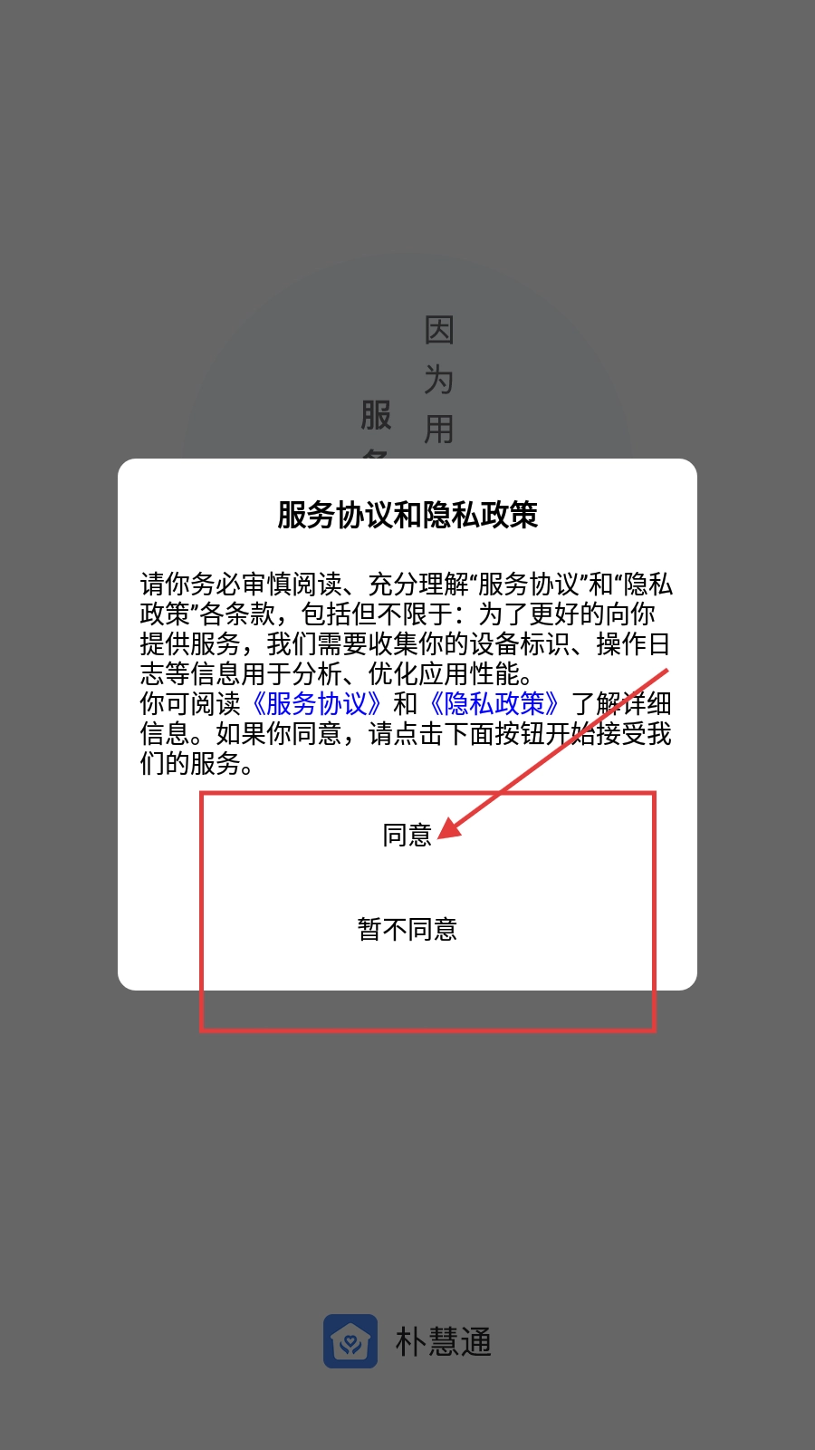 1、在服务协议和隐私政策界面,点击【同意】按钮,可进入登录界面。