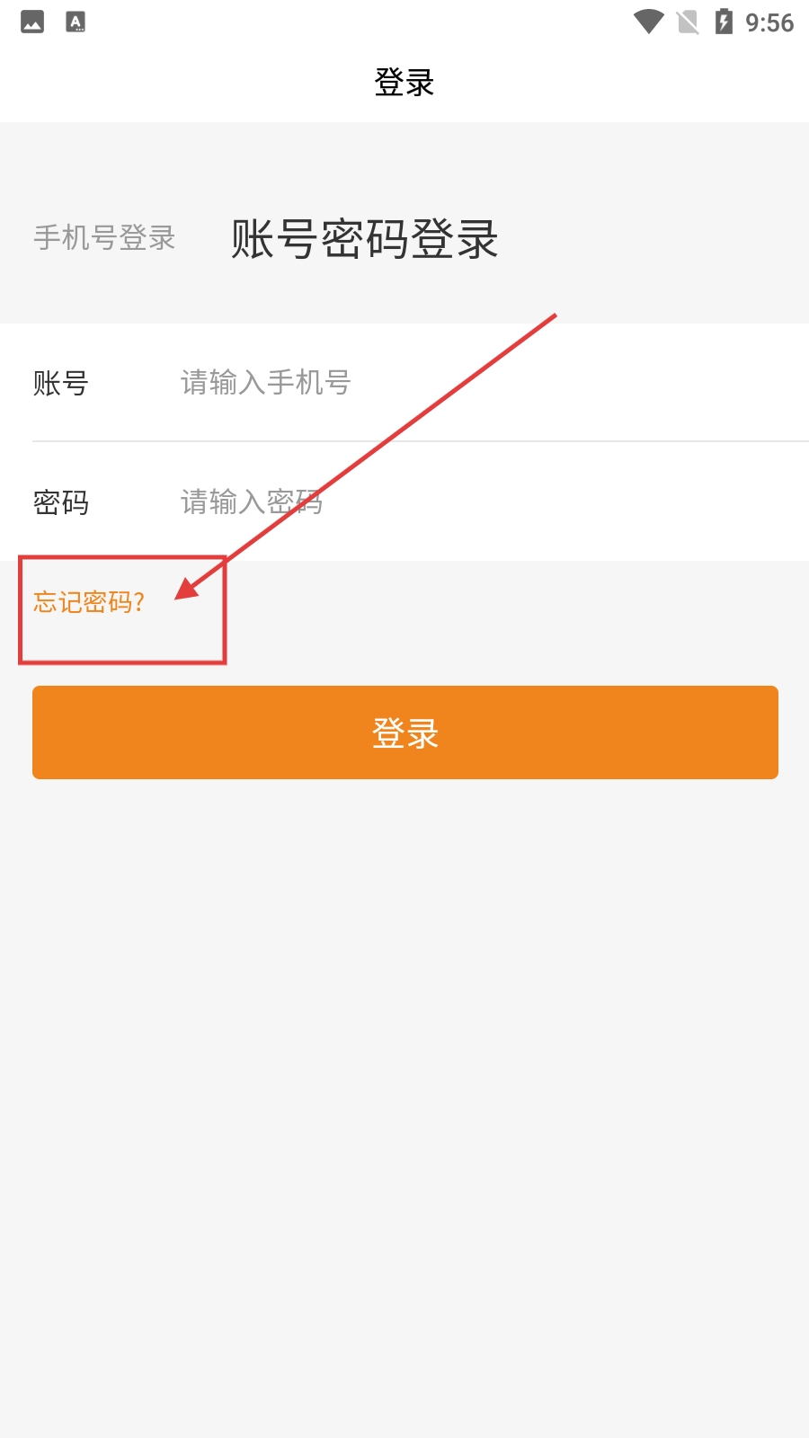 2、在账号密码登录界面,点击【忘记密码?】选项,可进入重置密码界面。