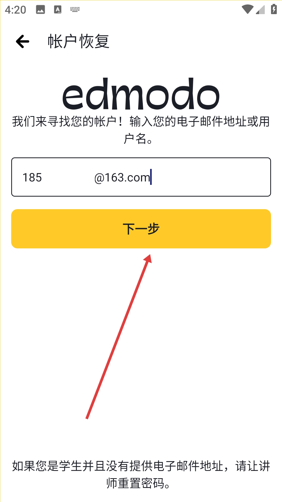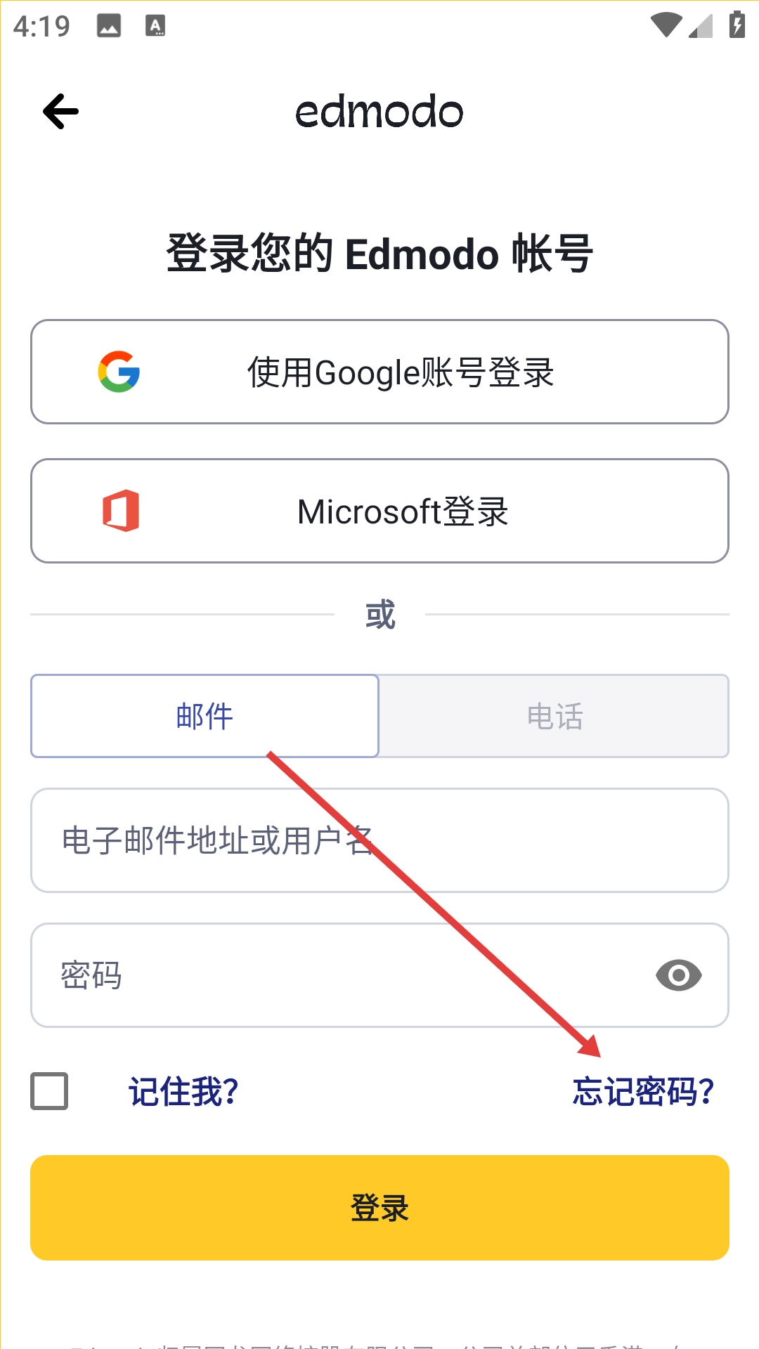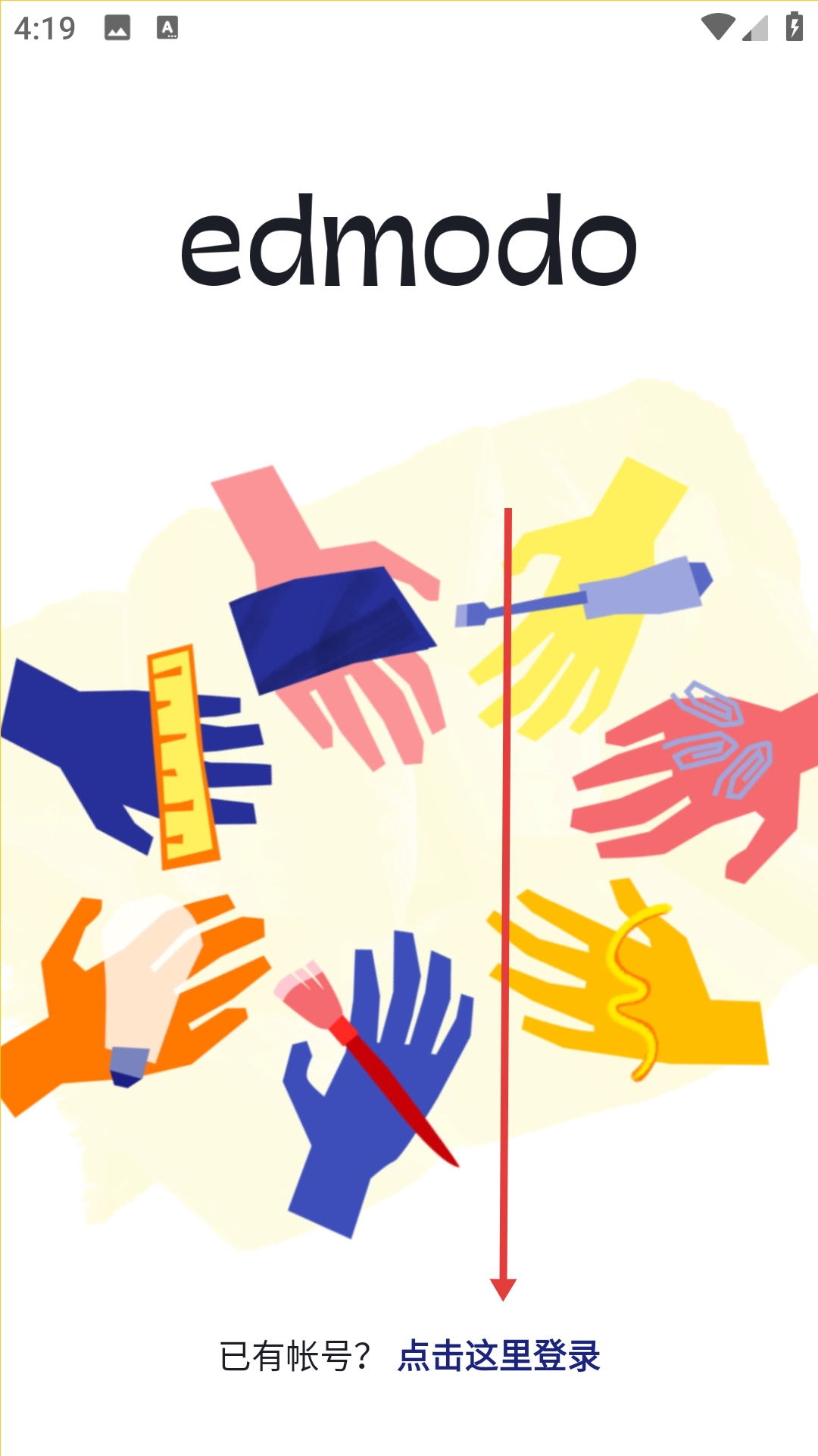1、点击“已有帐号?点击这里登录”,进入Edmodo账号登录页面。
