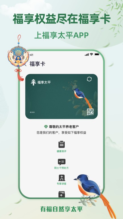 v1.0.4版本为迎接兔年特别推出了兔年专享版福享卡,用户登录即可领取。应用还上线了“迎瑞兔,贺新春”活动,用户可以通过分享定制祝福海报参与互动。福享金生专属商业养老保险也在此版本中正式上线,为用户提供了更多理财选择。连续七天的大展宏“兔”拜年海报,每日不重样,让用户感受到浓浓的年味。快来福享太平,一起福享温暖太平年!