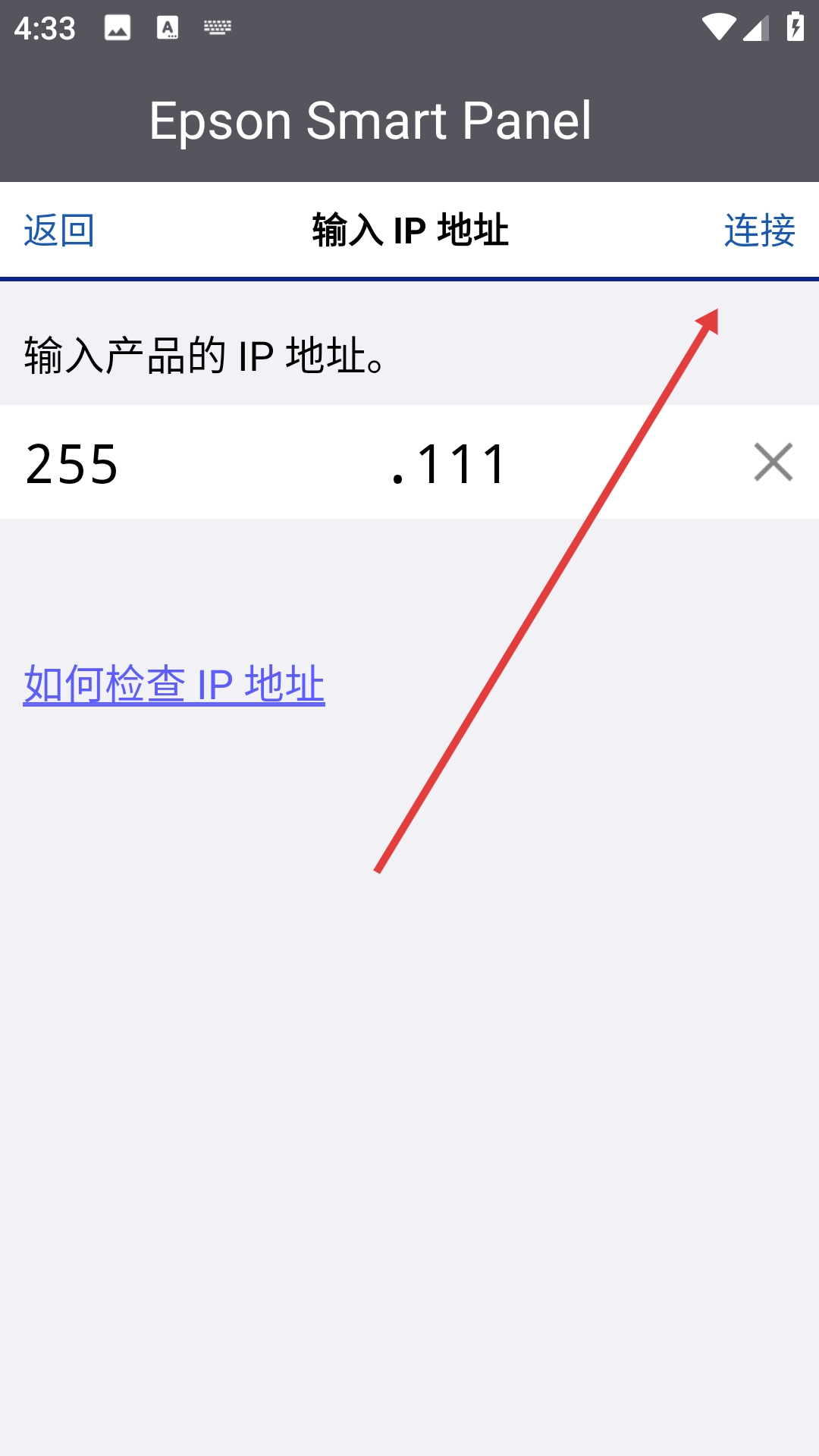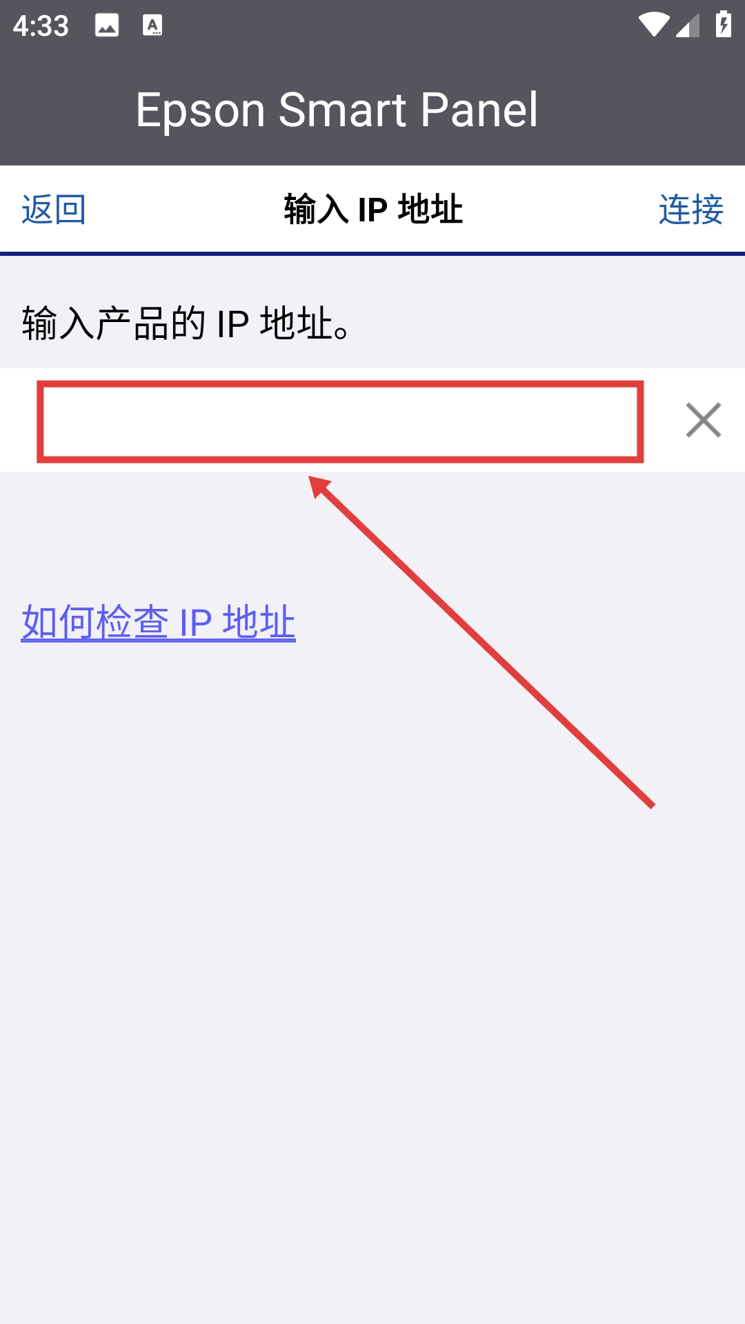 3、在IP地址输入页面的输入框中,填写产品的IP地址。