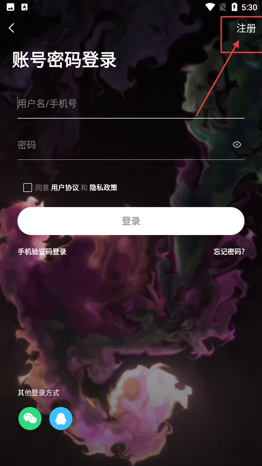 3、在登录界面,若没有账号,可点击右上角【注册】按钮进入注册流程。
