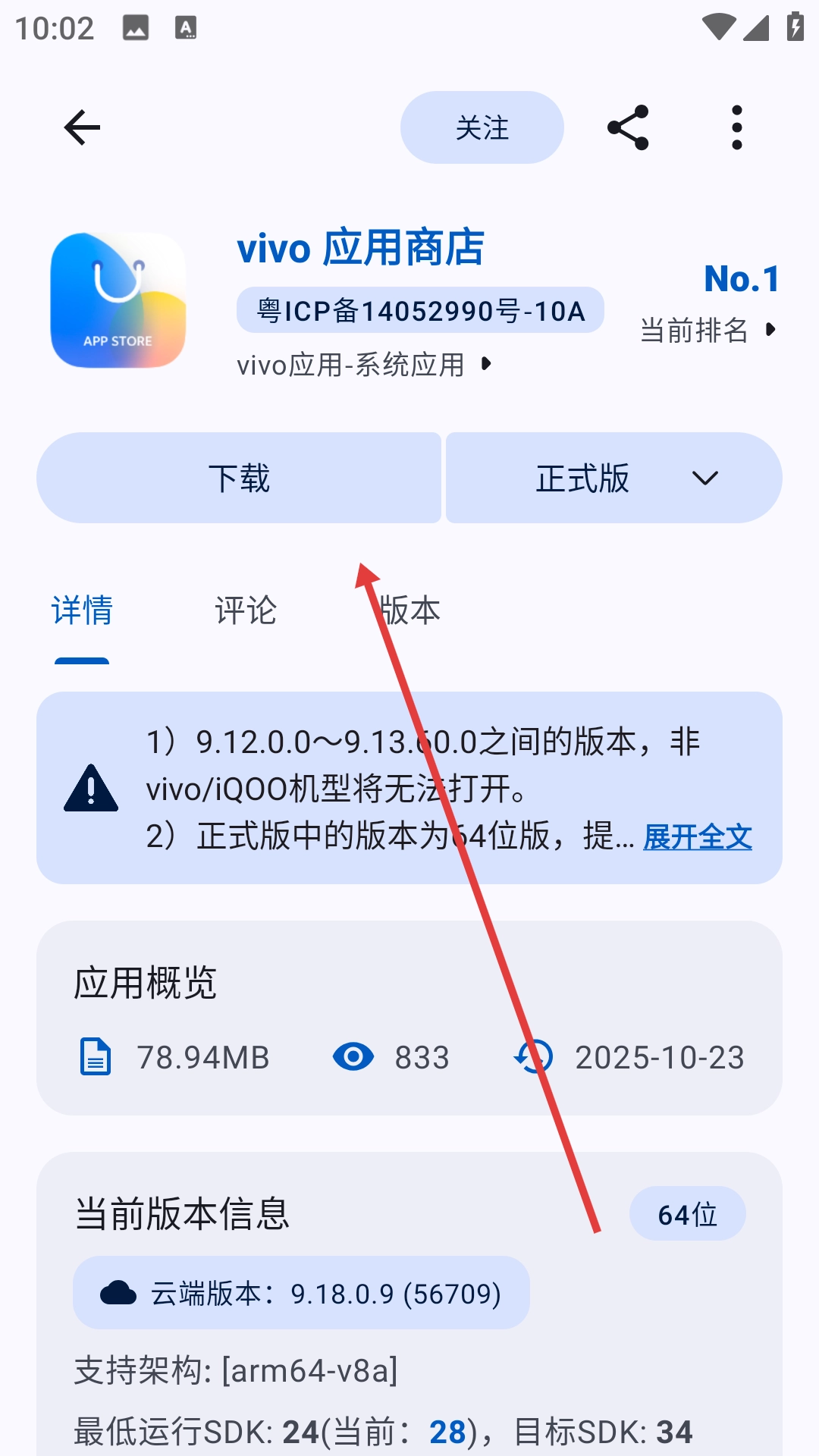 4、在vivo应用商店详情页面,点击【】,可该应用。