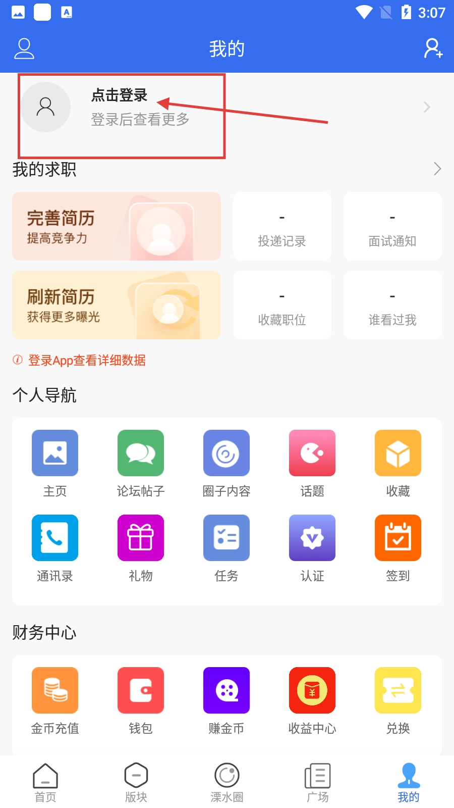 1、打开溧水114后,进入【我的】页面,点击该页面中的【点击登录】区域即可启动登录流程。