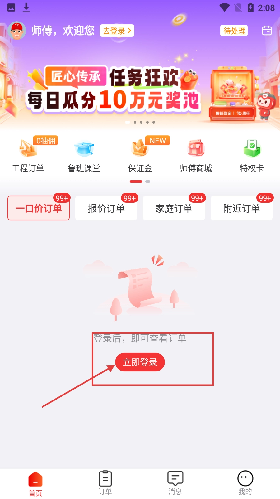 2、在主界面,点击【立即登录】按钮,进入登录界面。