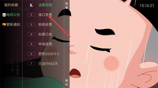 2、在菜单页面,点击【接口免费】选项,即可切换至类似iPanda熊猫频道的节目内容。