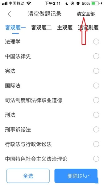1、打开软件后,在【我的】页面找到对应位置,点击那里的【清空做题记录】按钮。
