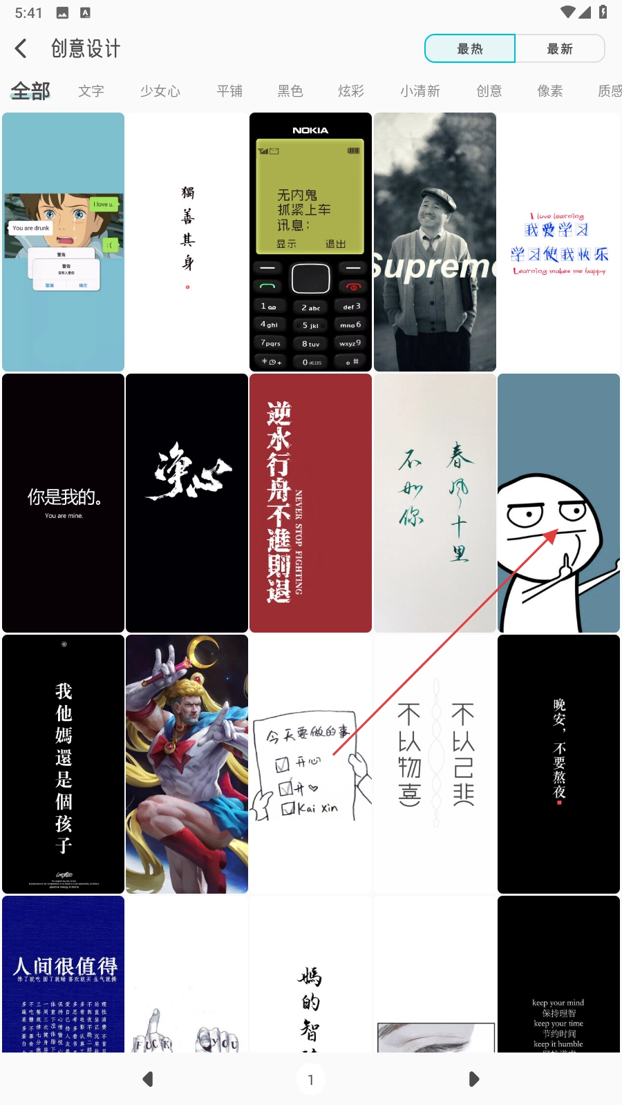 3、在图片列表页,点击感兴趣的图片,如创意设计类的图片,进入图片详情页。