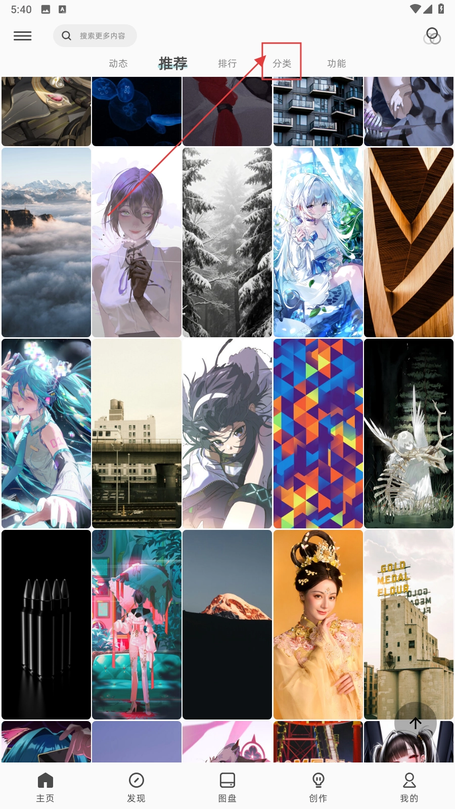 2、在分类页面,选择如【游戏魂-分类选项】,进入对应分类的图片列表页。
