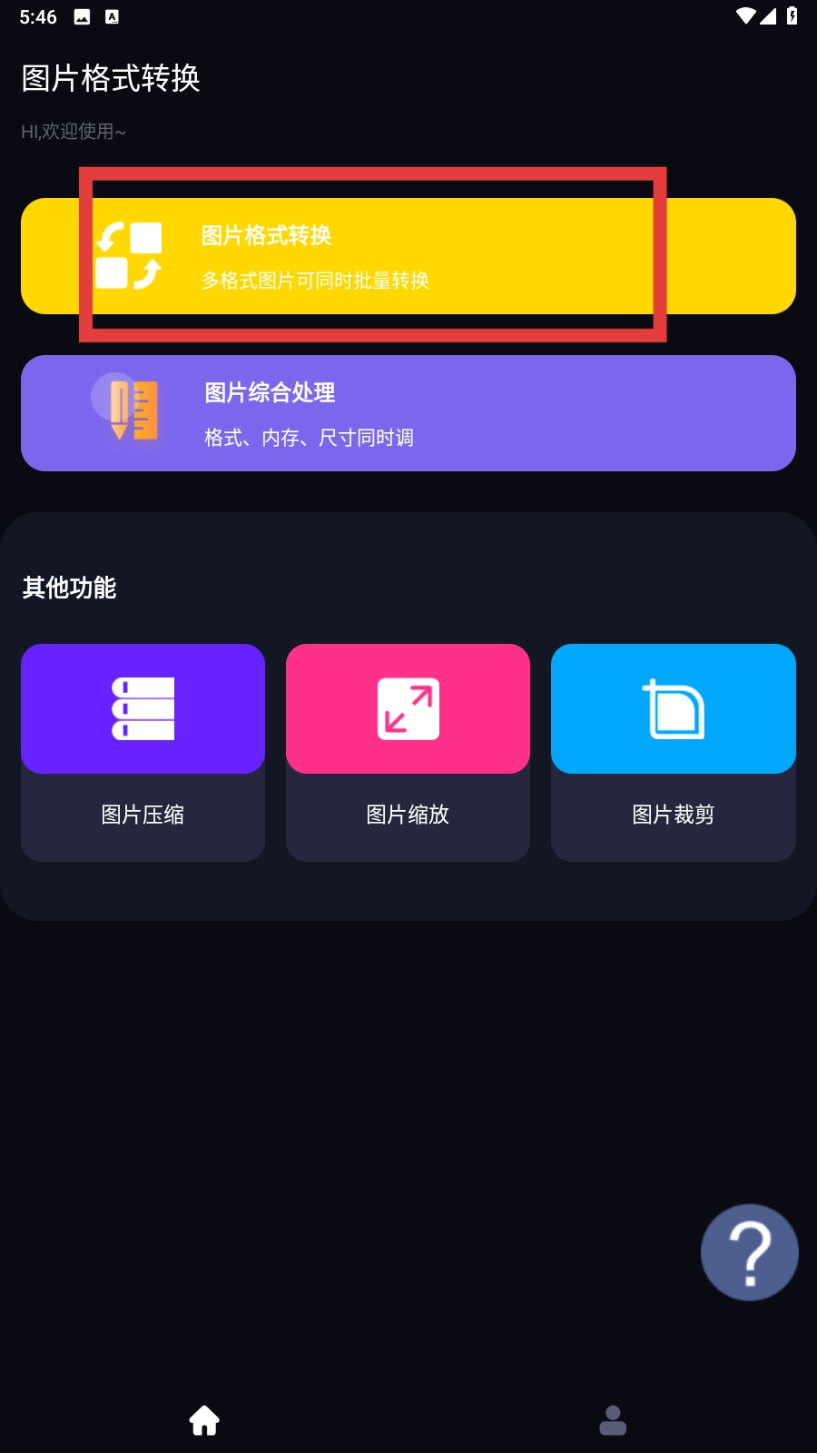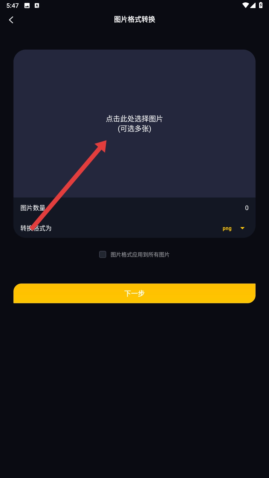 1、点击【图片格式转换】功能按钮,即可进入图片选择页面。