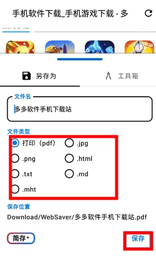 在操作界面里,能给要保存的文件重新命名,还可以挑选保存的文件格式,像PDF、图片之类的。确认好之后,点击“保存”按钮就能完成相关设置了。
