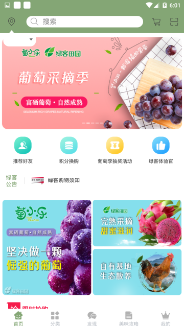 我们的农产品依托自有基地进行生态种养,借助绿客田园平台,能让田园里的美味新鲜直达您家,同时把自然、生态、健康的生活理念传递给您。现在推荐好友还能获得红包奖励,平台支持积分换购,而且随时都有优惠券可供抢购。您在这里购买的果蔬,全都是绿色无污、零添加的,它们均产自原产地,能确保食材新鲜,价格方面也十分实惠。