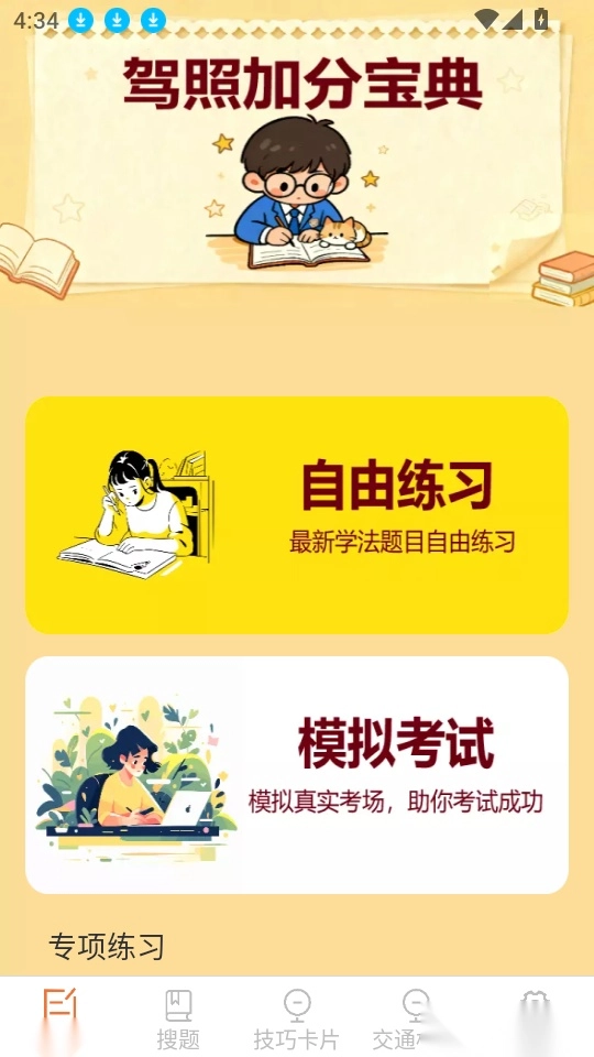 软件提供了线上的题库练习,支持用户专项练习相关的驾考题库,实时进行驾照加分。