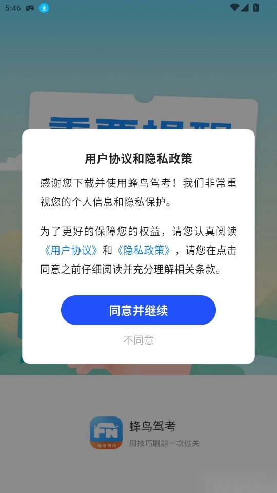1.打开软件阅读“用户协议和隐私政策”点击“同意并继续”进入