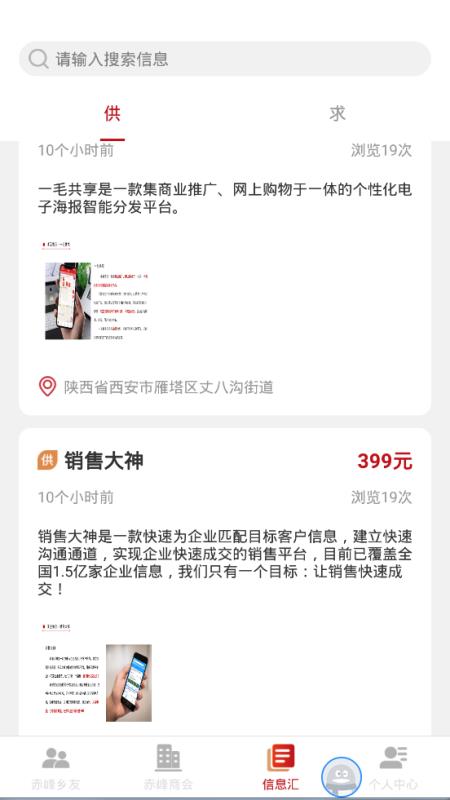 赤商凤采是一款资源共享服务软件,借助大数据技术搭建起资源分享与信息交换的平台,助力用户便捷获取最新信息、掌握优质资源,实现用户与商会间的顺畅交流和信息传递。平台还设有附近的人搜索功能,用户能通过搜索找到周边的人并展开沟通,分享自身资源信息,达成高效的资源互换。此外,赤商凤采已覆盖全国多地的知名企业,用户可在此探寻所需资源——只要持有同等价值的信息资源,就能参与信息互换,获取目标信息,轻松拉近用户与企业的联系。
