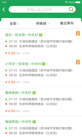 可按区域、早晚班、最近乘车等信息筛选线路;