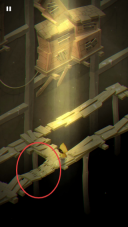 3、当遇到木板桥这类场景时,需操控角色踩在红圈标识的安全区域,避开桥面的断裂部分,以此通过危险路段。