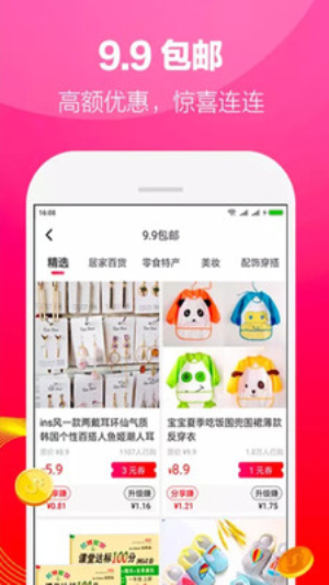 1每天都有高返利的主打好物,还有上百款九块九的特价商品更新,轻松就能买到实惠的促销好物。