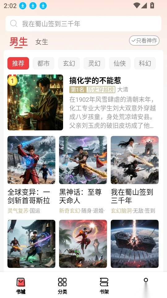 展示了全面的小说分类,各种精选的小说类型都可随心选择,实现分类的筛选查找。