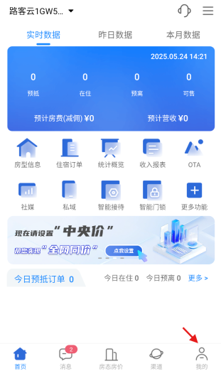 1、启动路客云应用,进入其首页后,在页面底部的导航栏中找到“我的”选项并点击该选项。