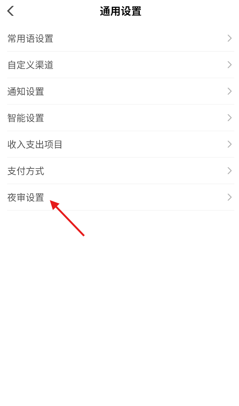 3、进入通用设置页面后,向下滑动找到“夜审设置”选项,点击该选项即可进入夜审功能界面。