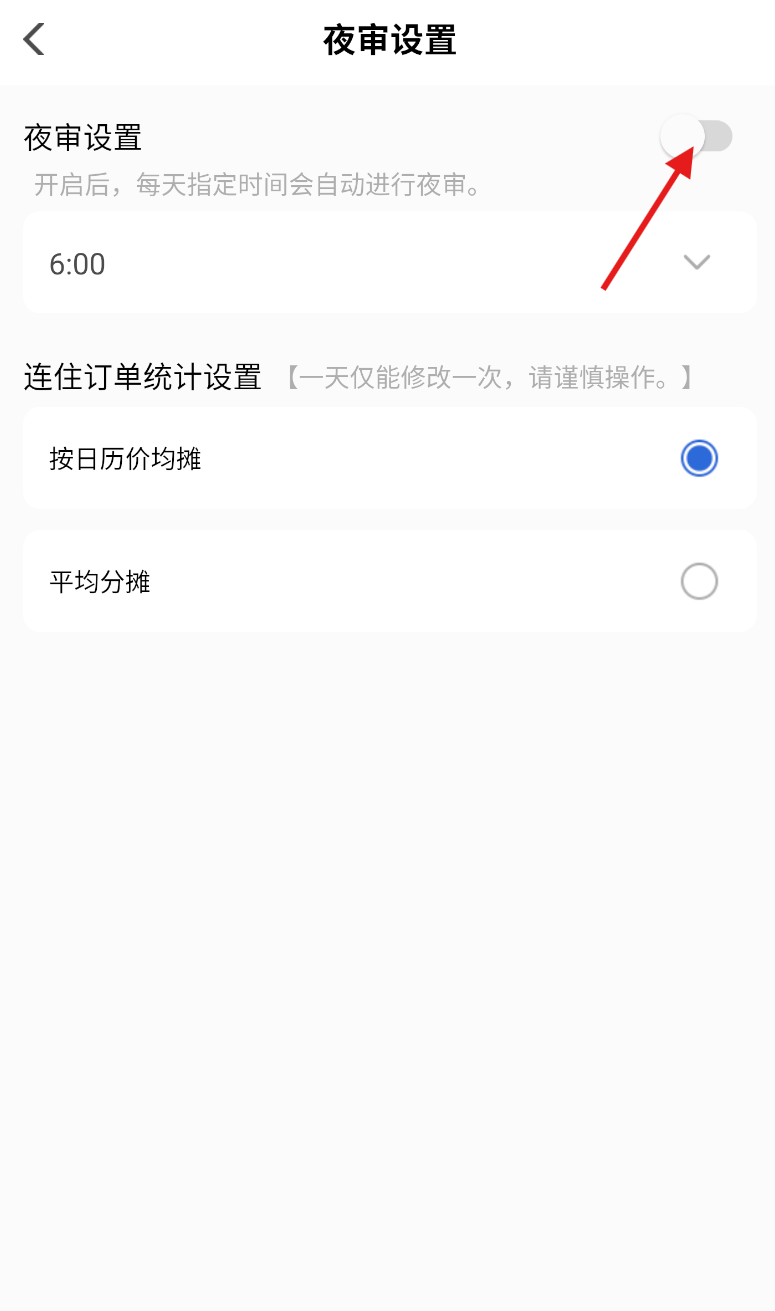 4在夜间审核的配置页面中,找到功能启用或停用的切换按钮,点击该按钮就能实现夜间审核功能的开启与关闭操作。