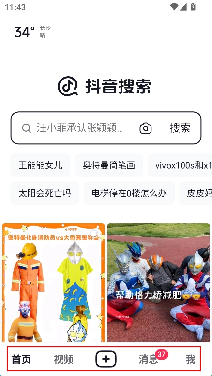 搜索功能,其实和抖音内的搜索功能没有太大区别。