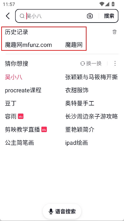 搜索完之后,再次点击搜索框就能看到搜索历史