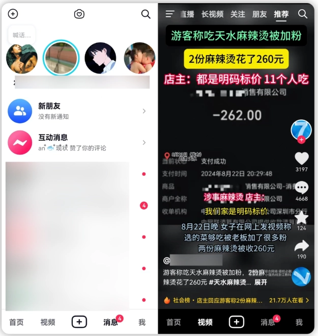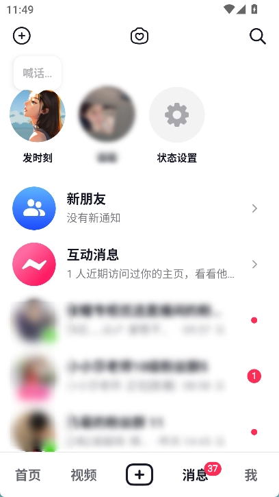 底部点击【消息】,可以看到自己抖音关注的博主直播和粉丝群、互动消息以及新朋友新通知等。这个和抖音一样。