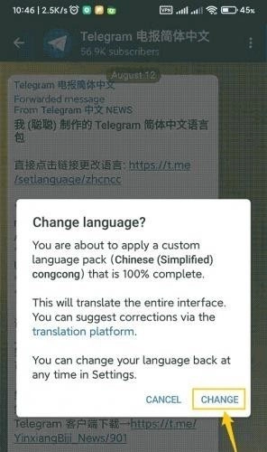 4、弹出提示“Change language”?选择“CHANGE”。: