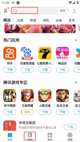 1、打开软件进入到“游戏”栏目中,在其中搜索你喜欢的游戏,你还可以查看当下最热门的