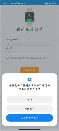 1.安装腕间应用助手在手机上,打开软件,授予读取文件的权限;