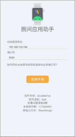 2.在手表上获取ADB链接地址,之后将其填入对应位置,点击【连接手表】;
